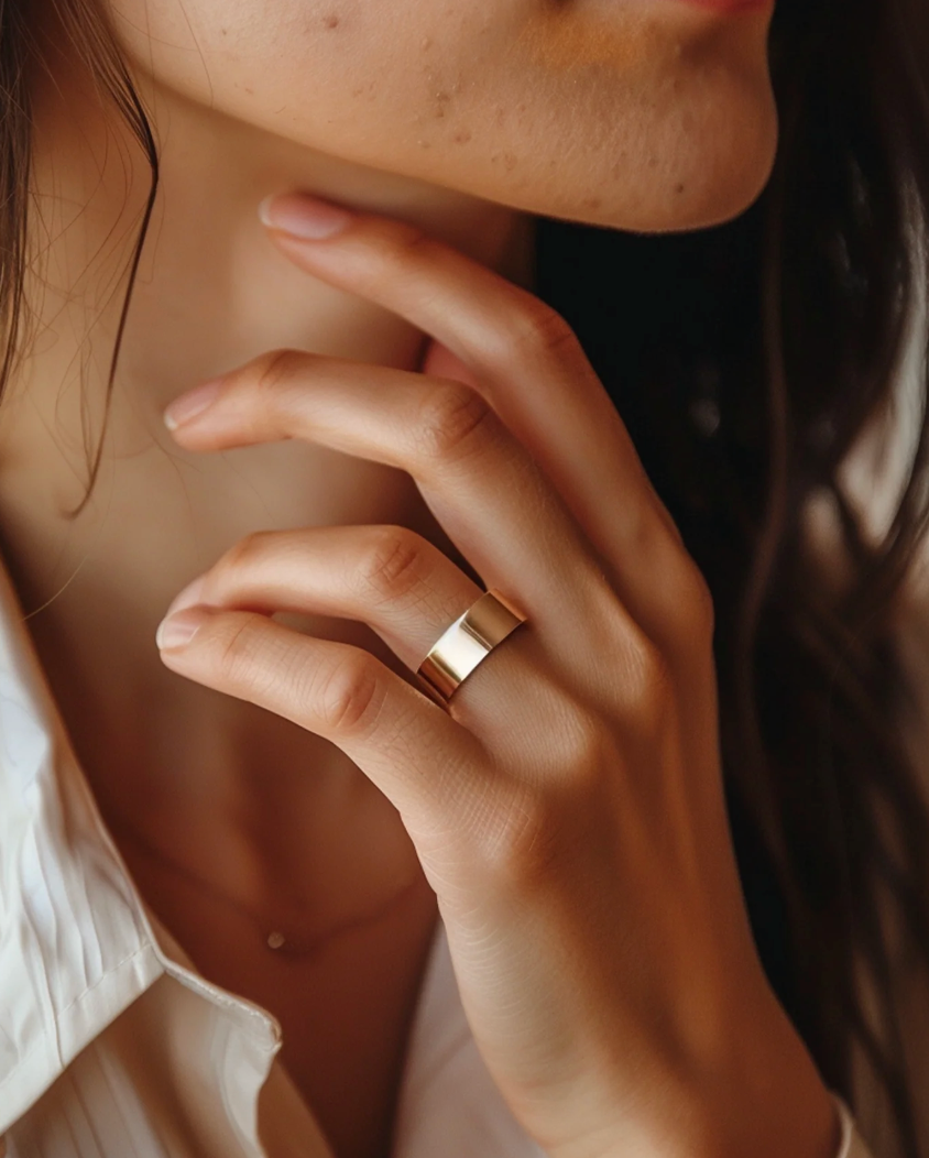 Choć palec środkowy to świetny wybór uniwersalny, pierścień Aurelia działa na każdym palcu, wywierając delikatny nacisk na obszary związane z regulacją nerwów, krążeniem i odprężeniem mięśni. Warto spróbować różnych palców i sprawdzić, co działa najlepiej w Twoim przypadku.